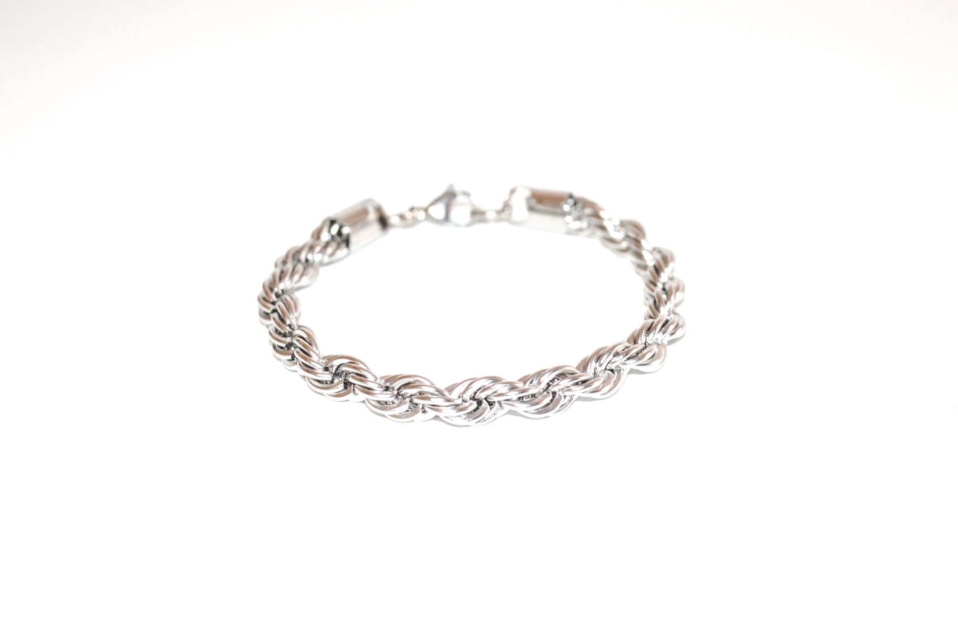 Detta eleganta Cordell-armband i silver har en bredd på 8 mm och är tillverkat av högkvalitativt 316L kirurgiskt rostfritt stål. Armbandet är utformat för att tåla både svett, dusch och bad utan att förlora sin glans eller form. Det allergisäkra materialet garanterar att du slipper gröna märken och irritationer på huden. Perfekt för dagligt bruk och passar alla tillfällen. Dess tidlösa design och hållbarhet gör det till ett stilrent tillägg till din smyckeskollektion.